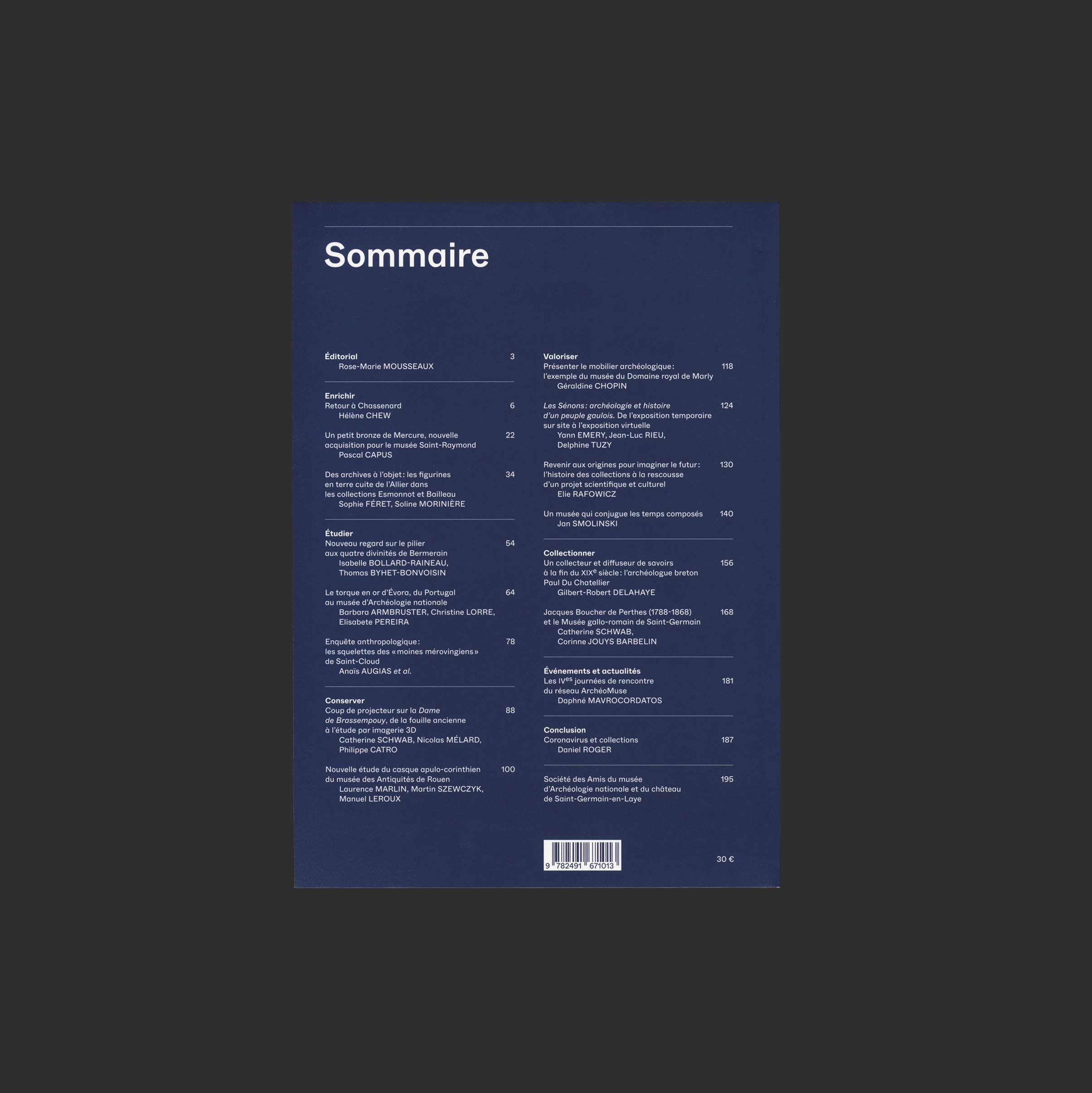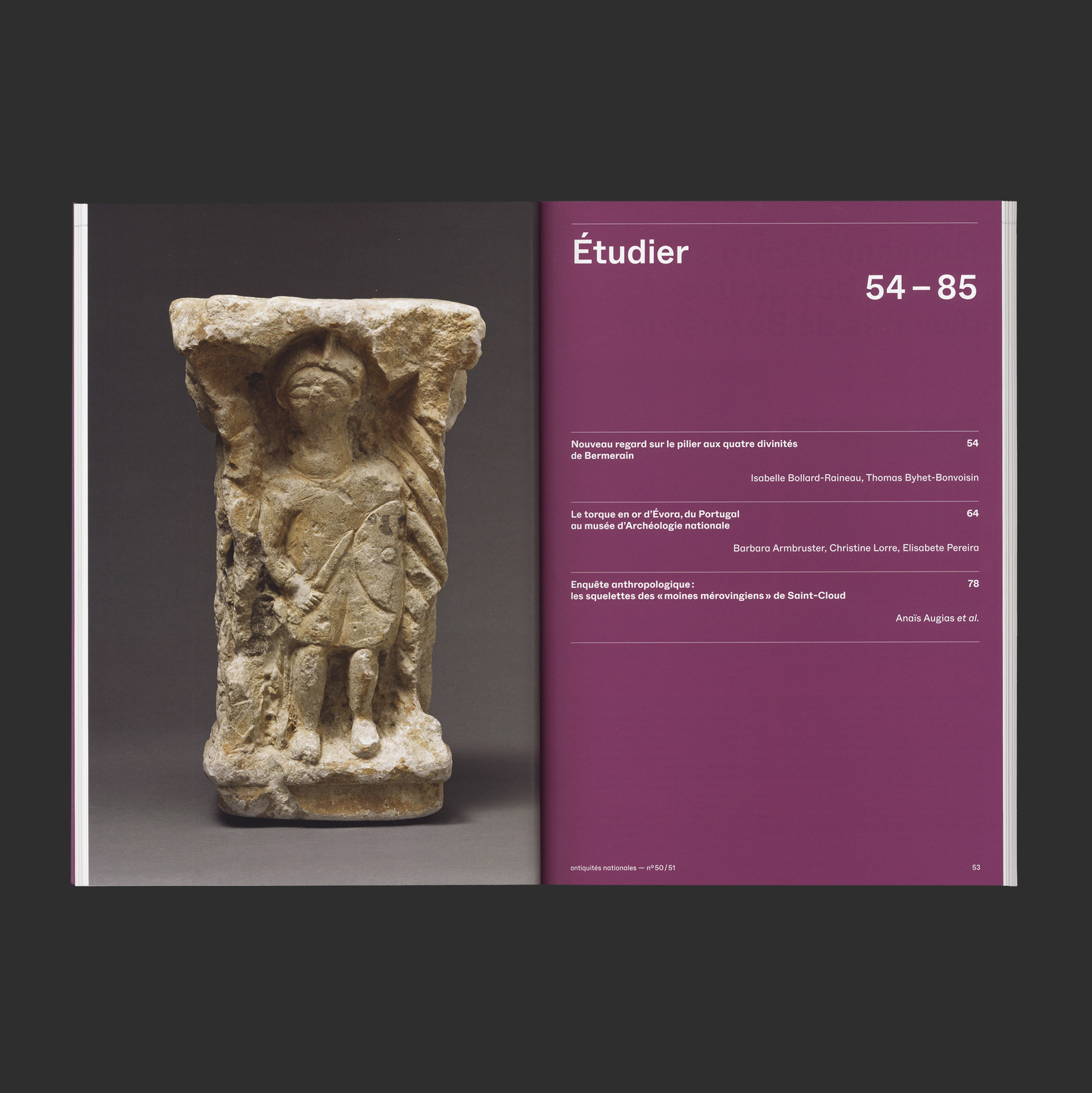 Le Musée d’Archéologie nationale – Domaine national de Saint-Germain-en-Laye édite cette revue scientifique à parution annuelle. Elle s’adresse principalement aux chercheurs ainsi qu’aux personnes s’intéressant à l’archéologie. La mise en page, très claire, avec des hiérarchies simples et lisibles, est pensée en fonction de ce public spécialisé.