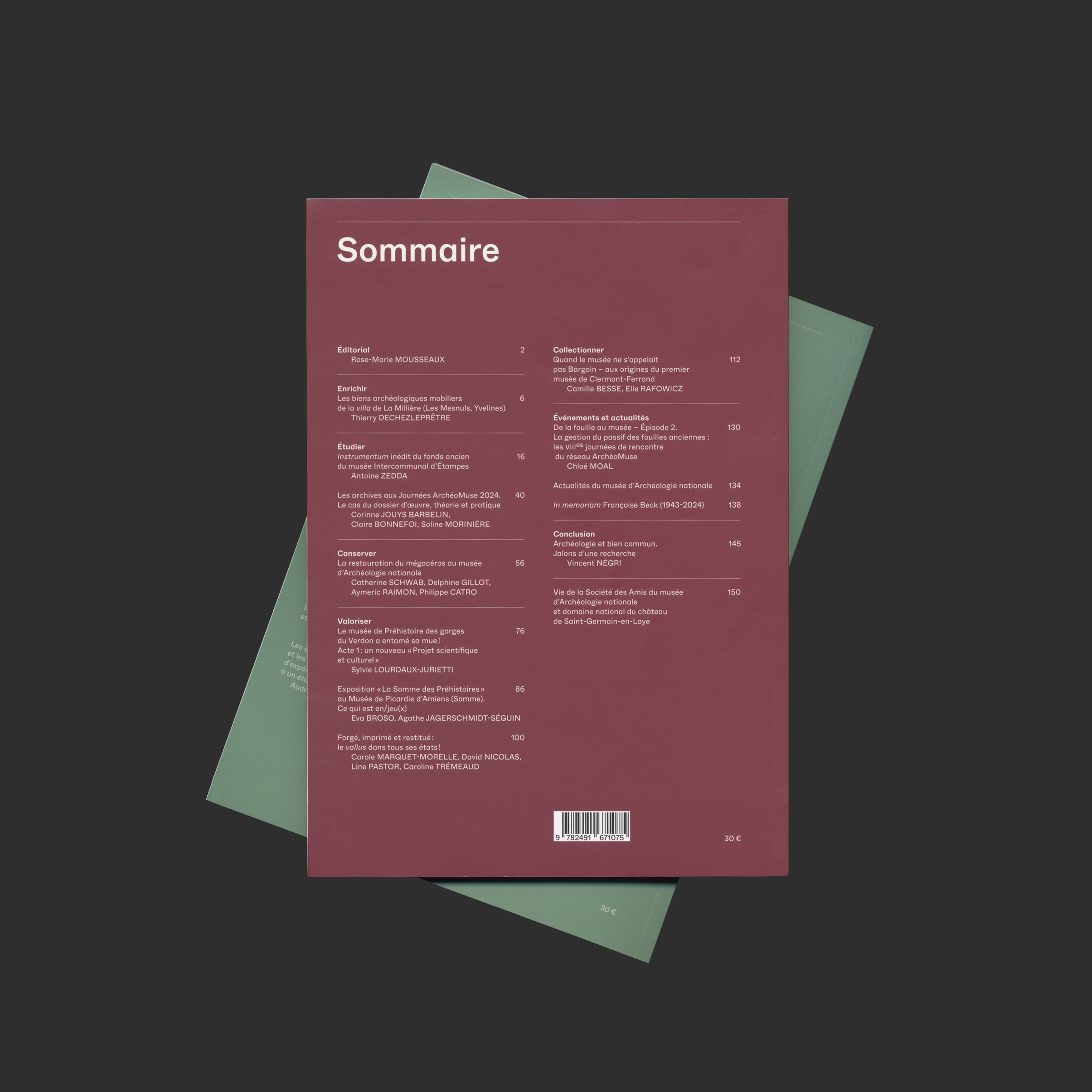 Le Musée d’Archéologie nationale – Domaine national de Saint-Germain-en-Laye édite cette revue scientifique à parution annuelle. Elle s’adresse principalement aux chercheurs ainsi qu’aux personnes s’intéressant à l’archéologie. La mise en page, très claire, avec des hiérarchies simples et lisibles, est pensée en fonction de ce public spécialisé.