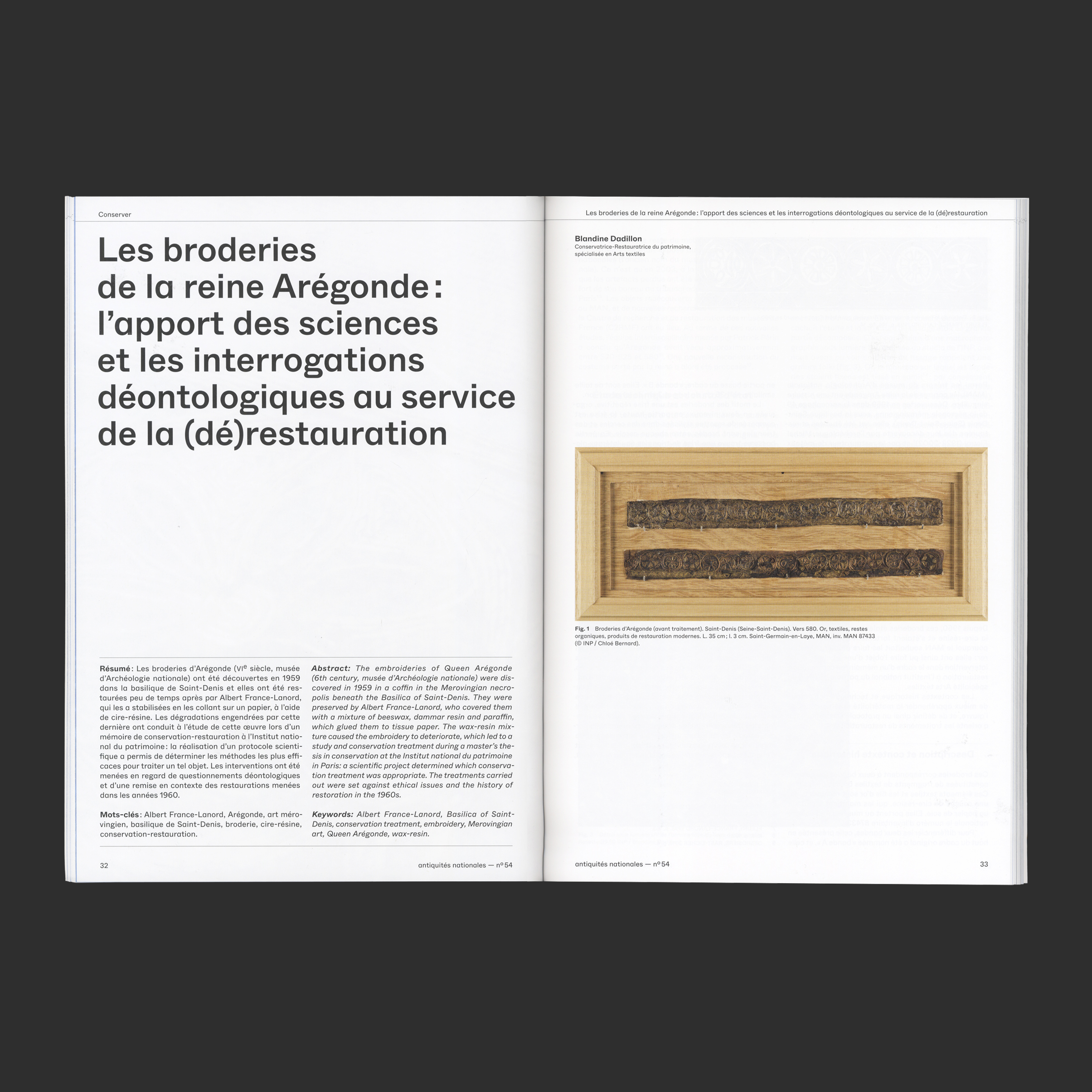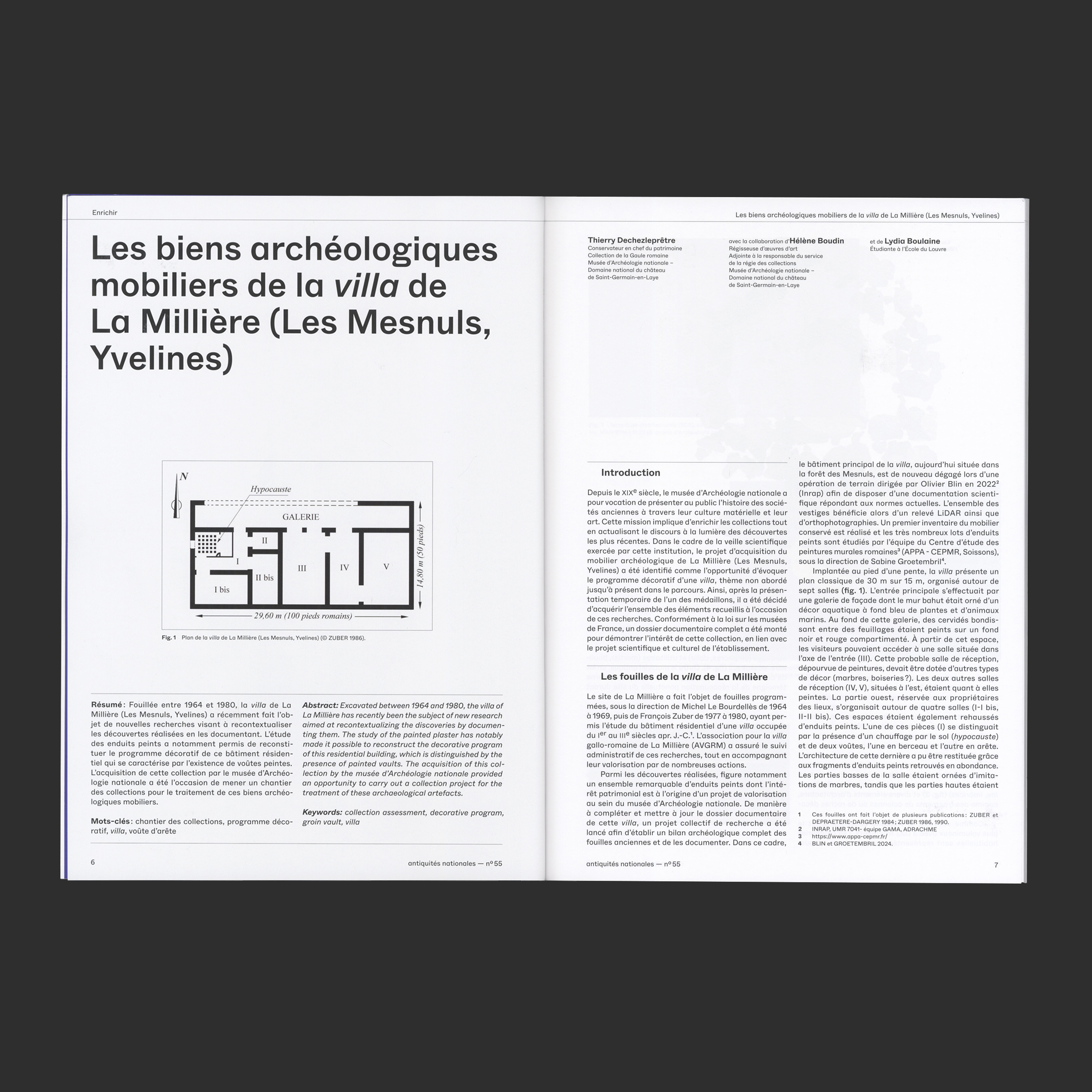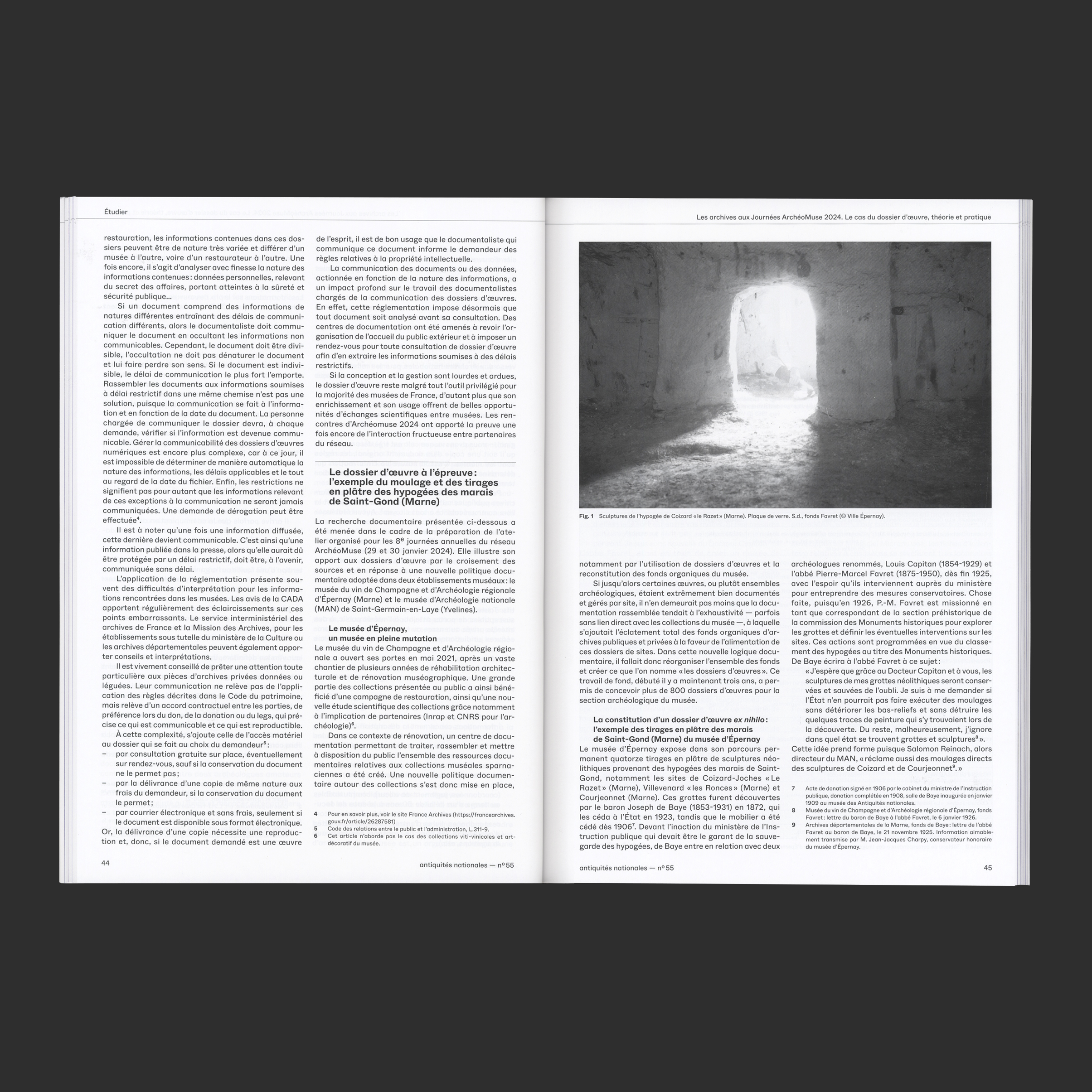 Description : conception et mise en page de la revue antiquités nationales N°54, 55