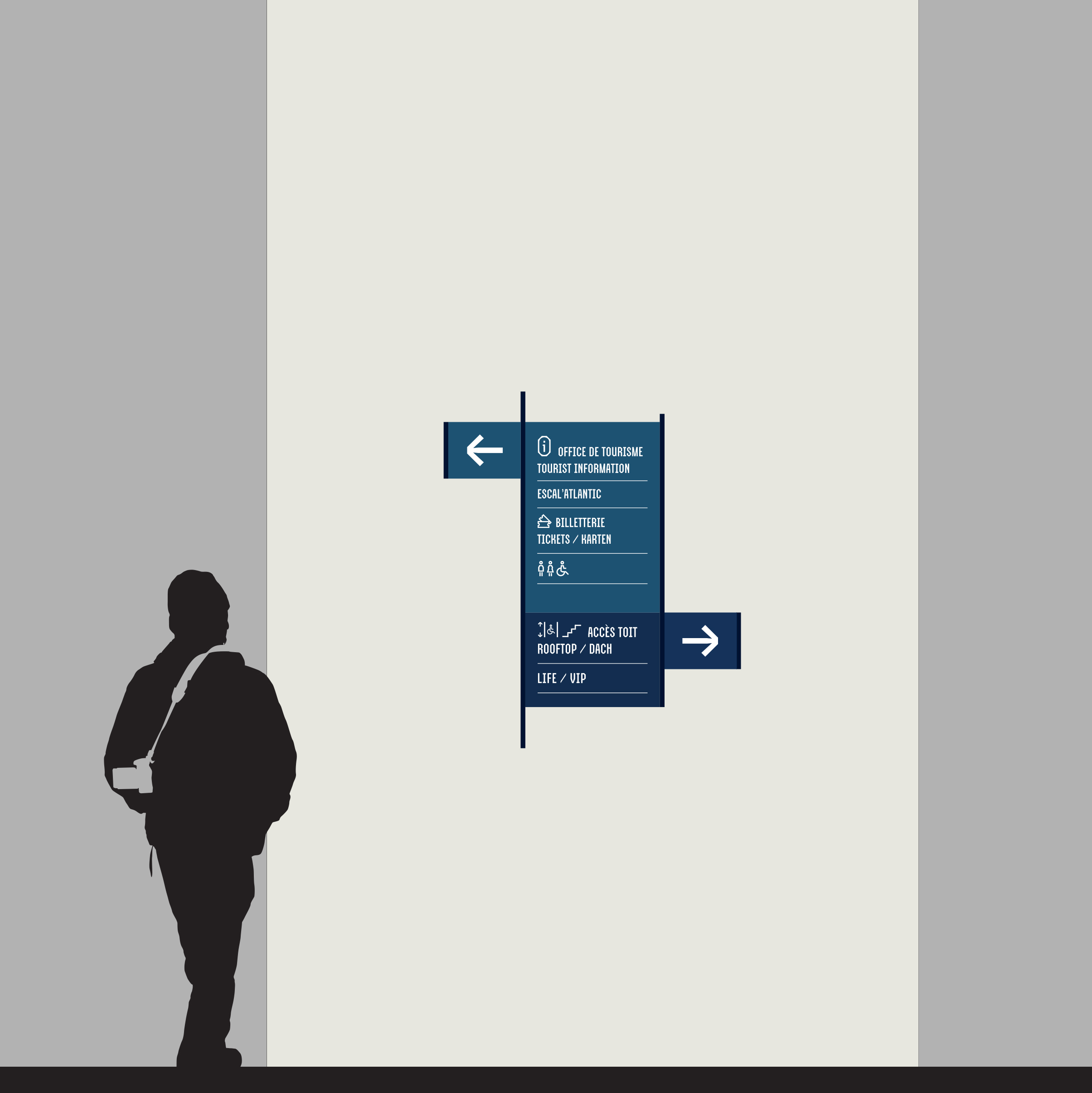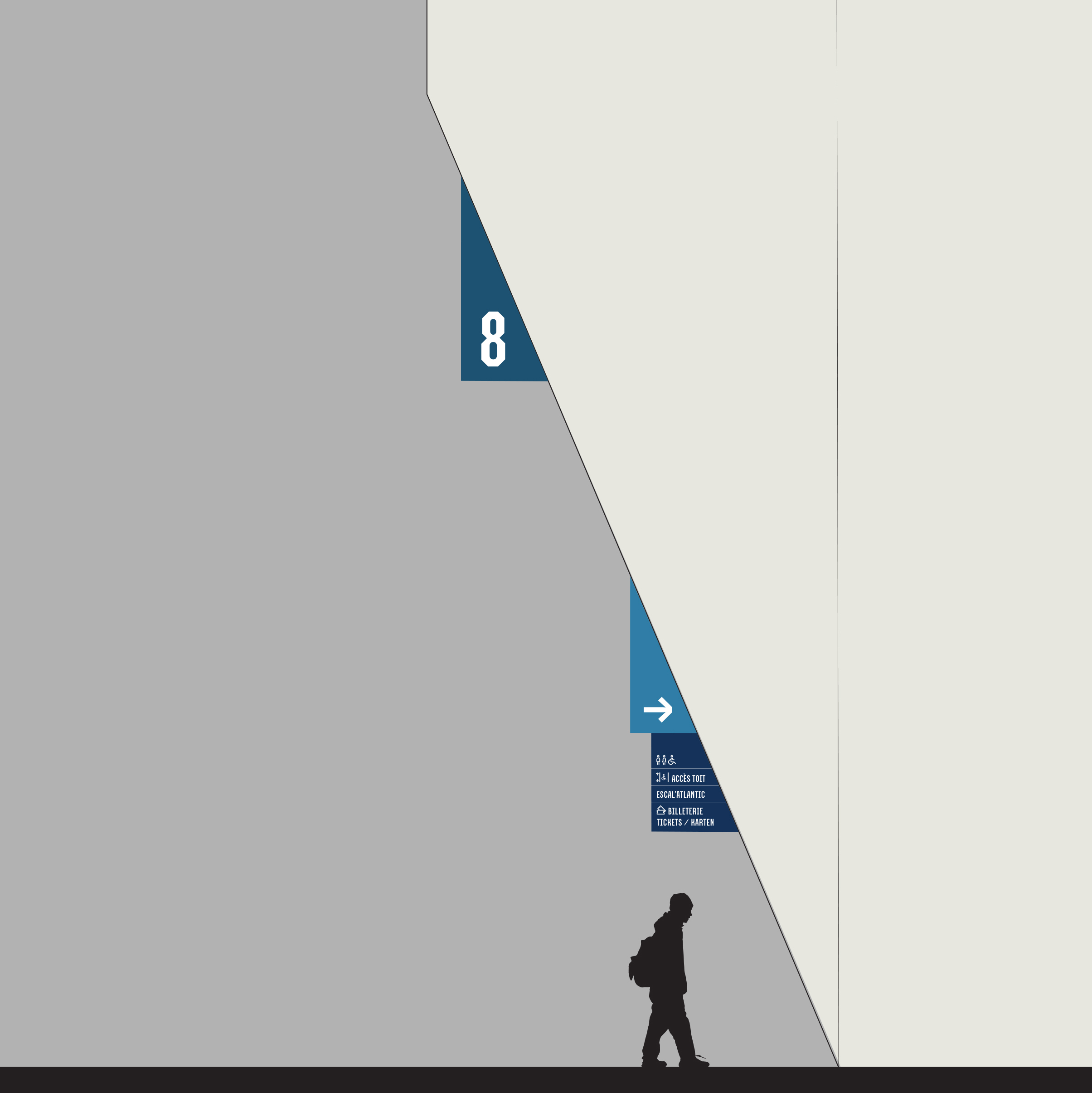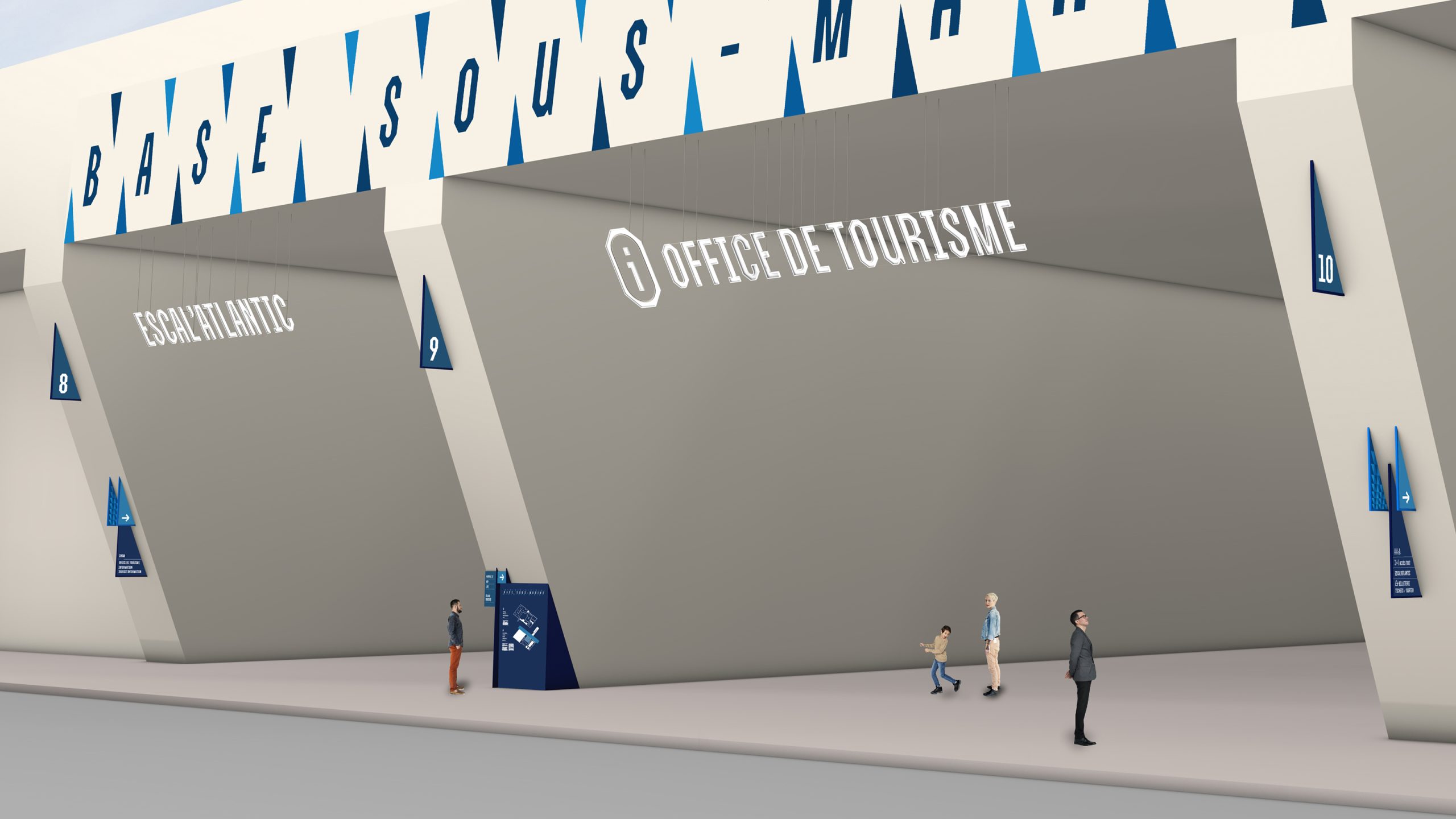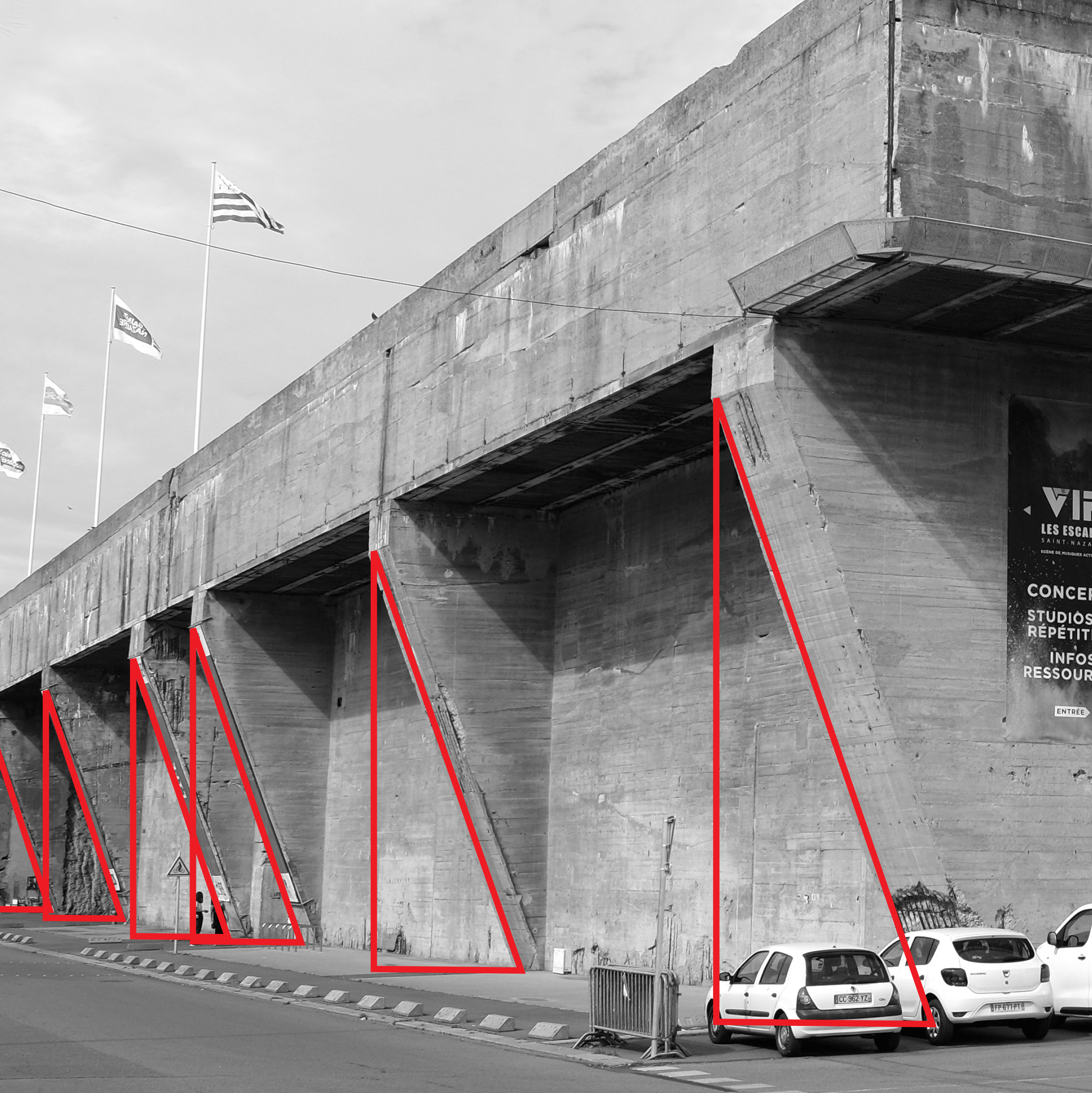 Ce clin d’œil formel au triangle permet aux visiteurs, en proximité immédiate de la mer et du port de Saint-Nazaire, de construire leur propre récit.