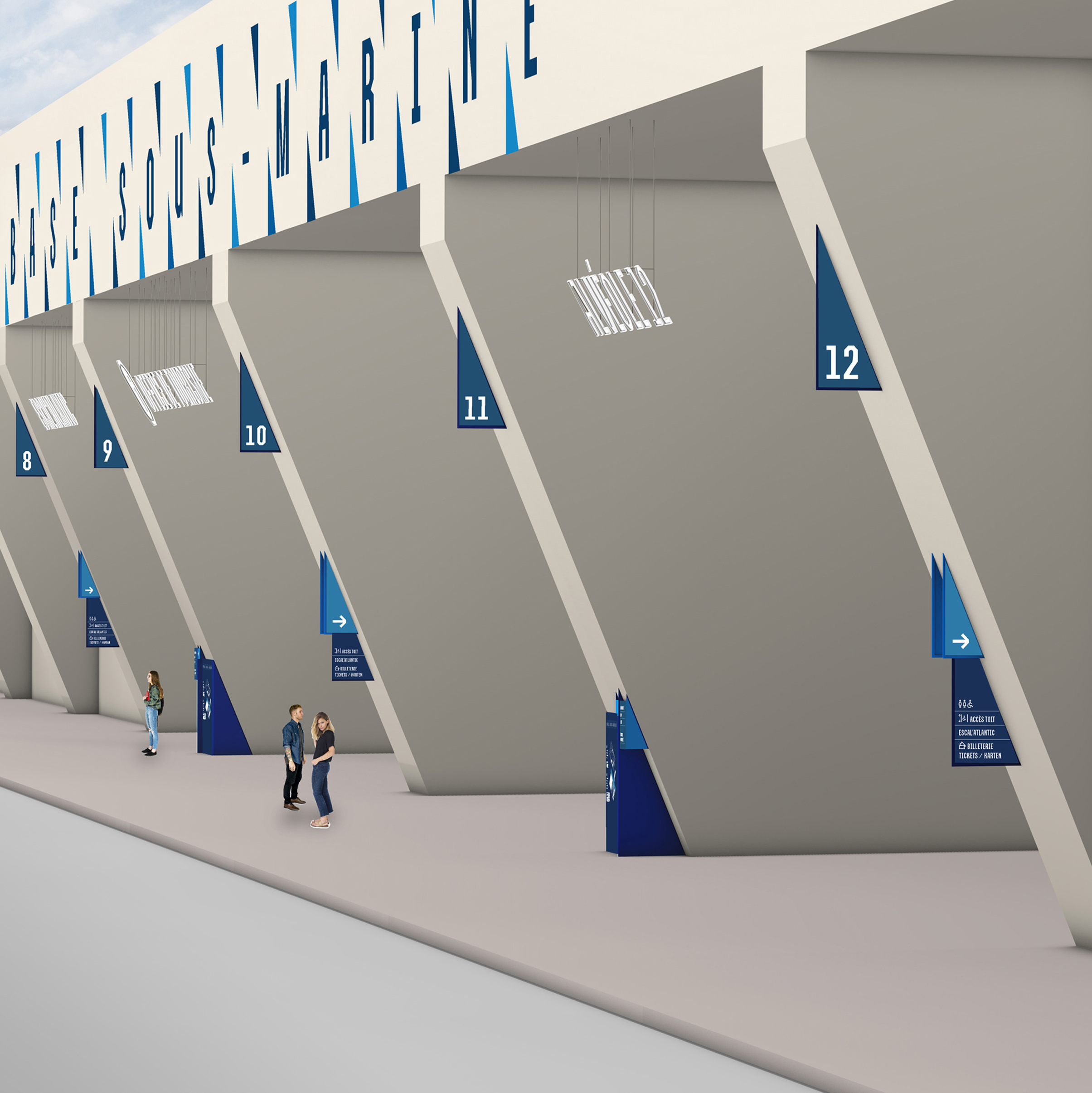 Des associations émergent : les vagues qui avancent jusqu’au port et au bassin, traversant la base sous-marine ; la voile, le vent, la quille, le drapeau, le signal…