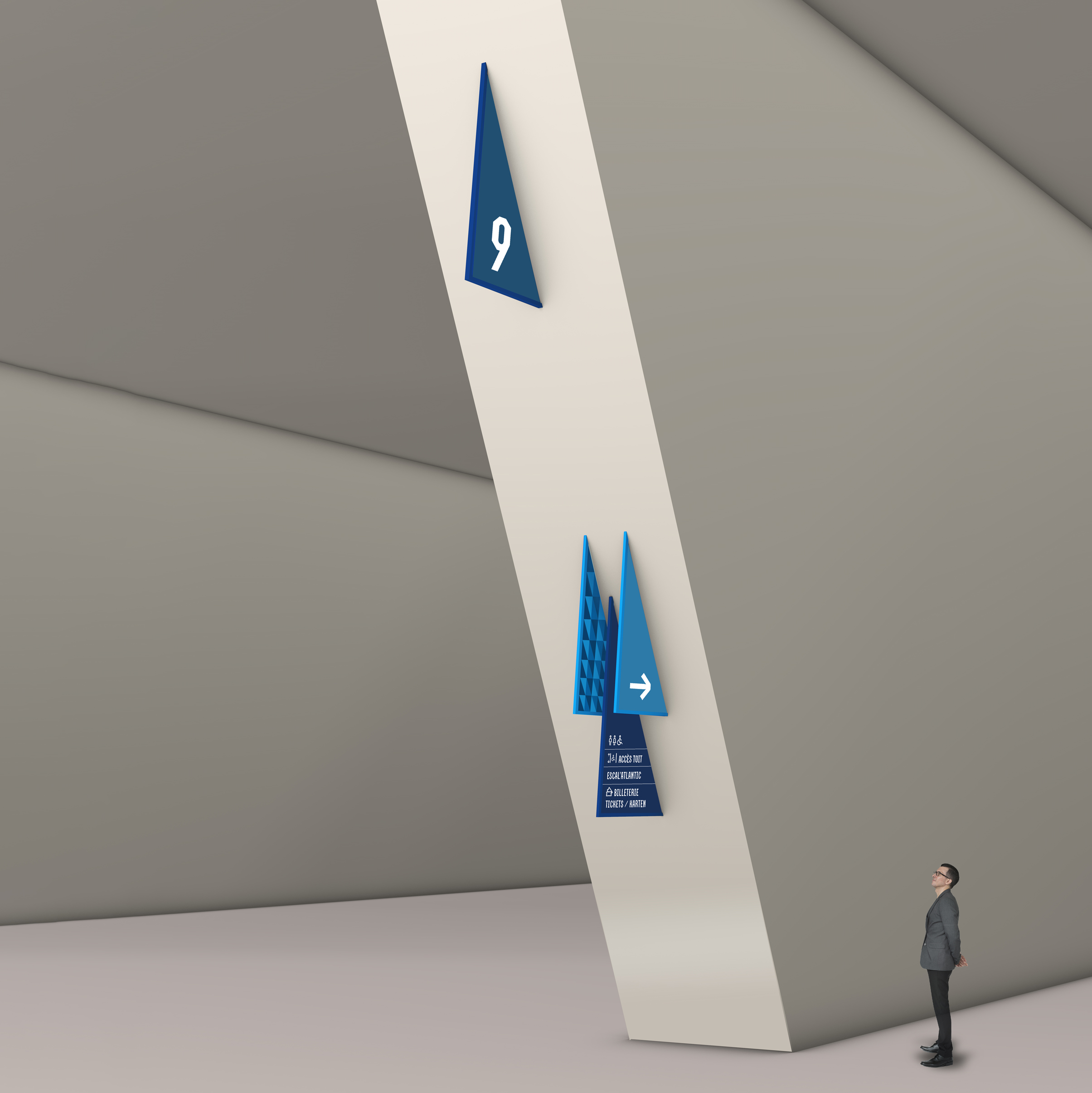 Dans un jeu de prolongement et d’inversion formelle, en résonance avec la structure du bâtiment, une famille de supports triangulaires vient rythmer les façades et ponctuer les ouvertures des alvéoles.