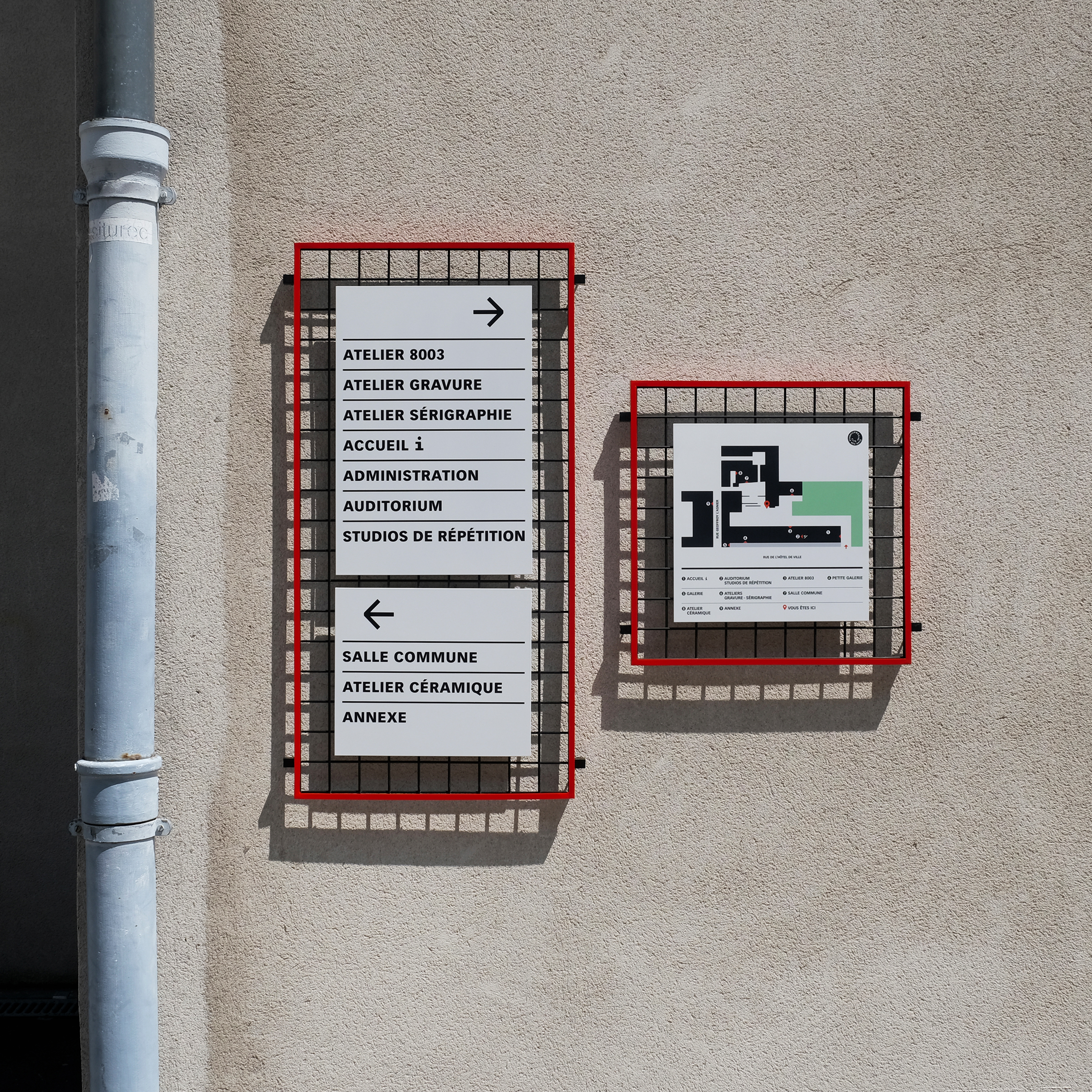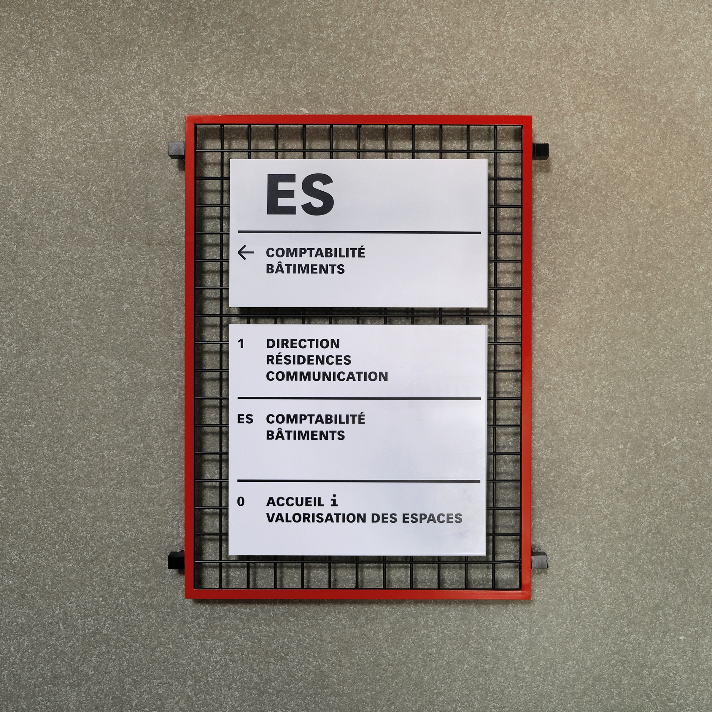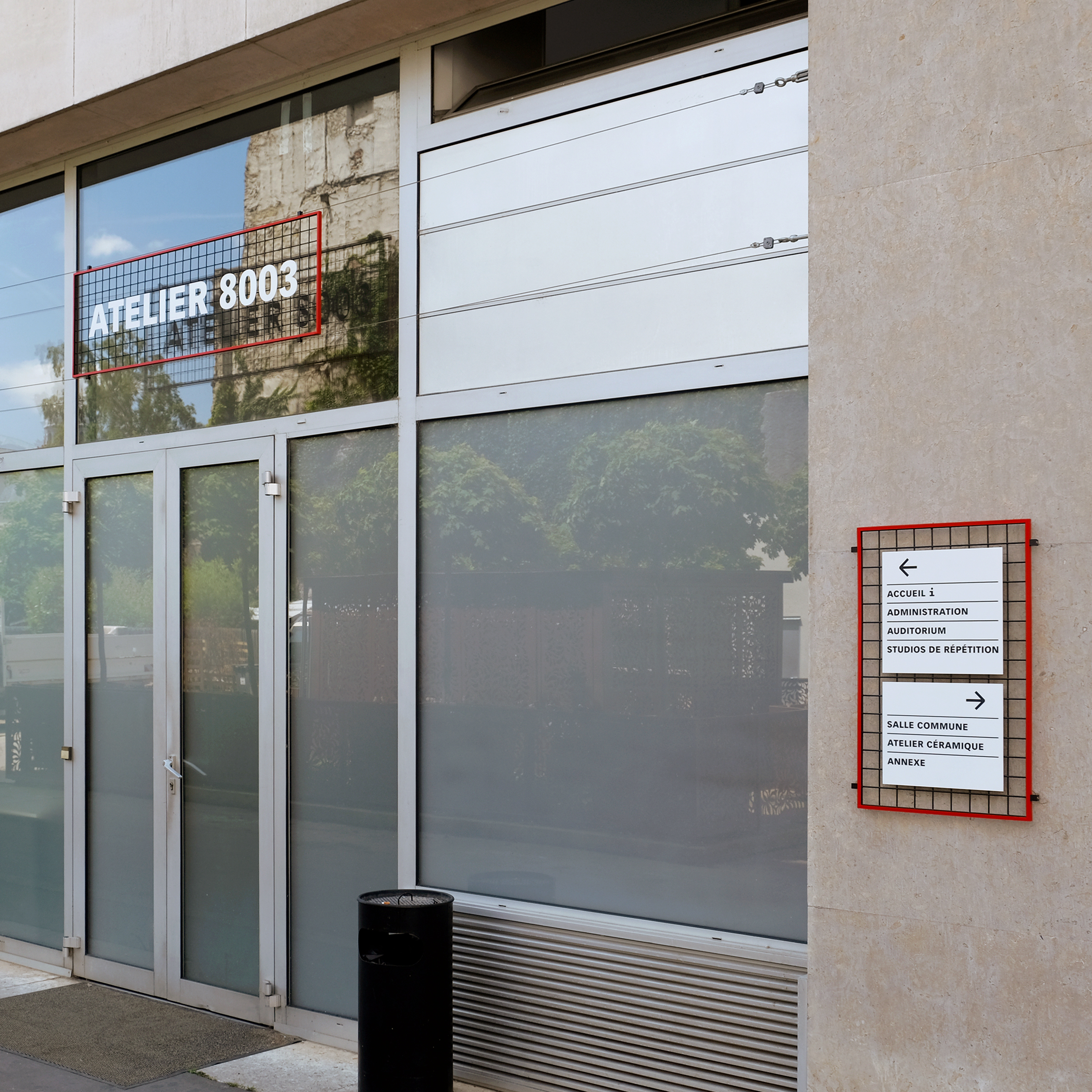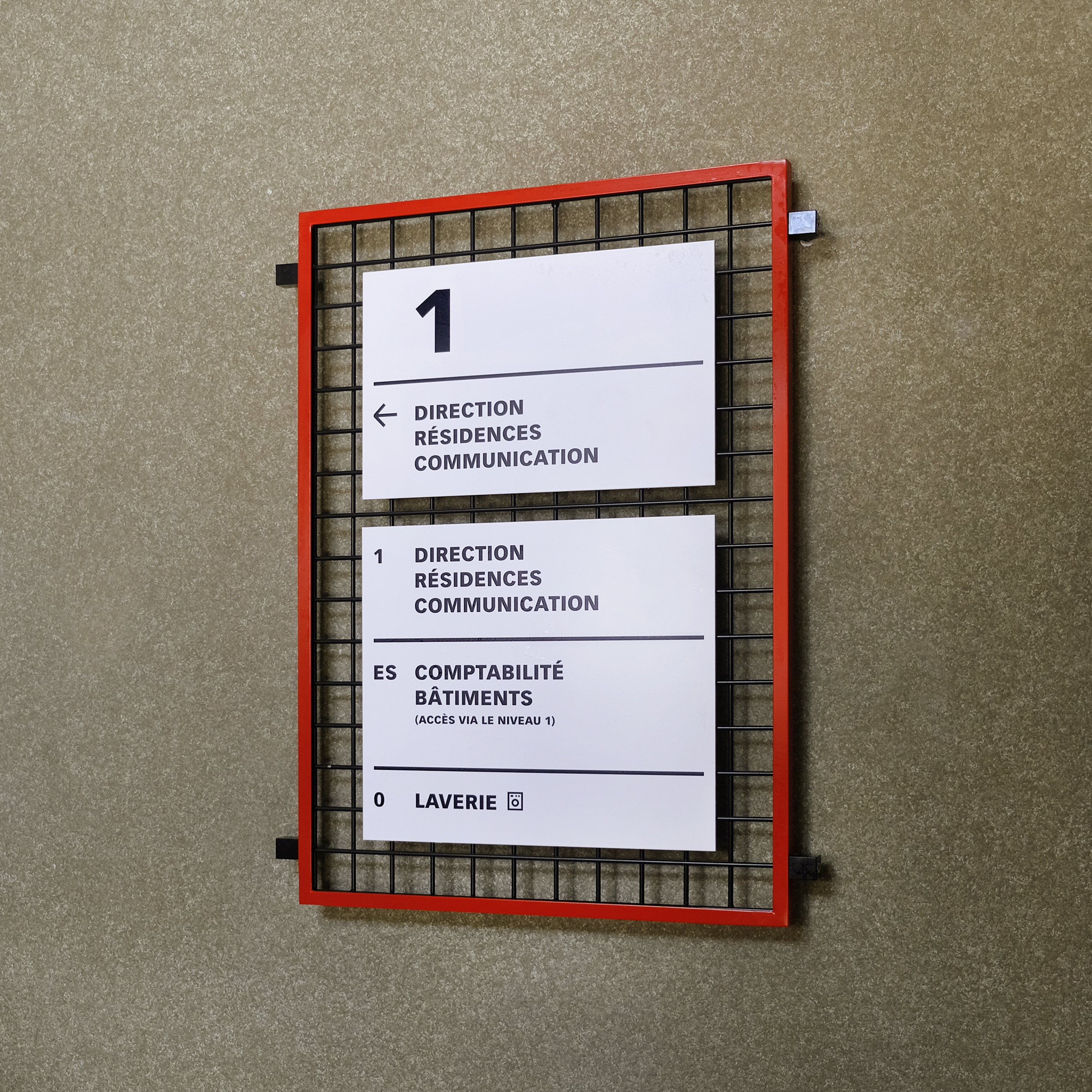 La Cité internationale des arts est une résidence d’artistes qui rassemble, au cœur de Paris, des artistes et leur permet de mettre en œuvre un projet de création ou de recherche dans toutes les disciplines. La signalétique est conçue en dialogue avec les spécificités architecturales et contextuelles du site, et s’y intègre harmonieusement. Les matériaux, issus de l’industrie, sont sélectionnés pour leur efficacité économique, puis adaptés au projet et placés dans un nouveau contexte d’usage – à l’image du lieu lui-même, qui ne cesse de se recontextualiser.