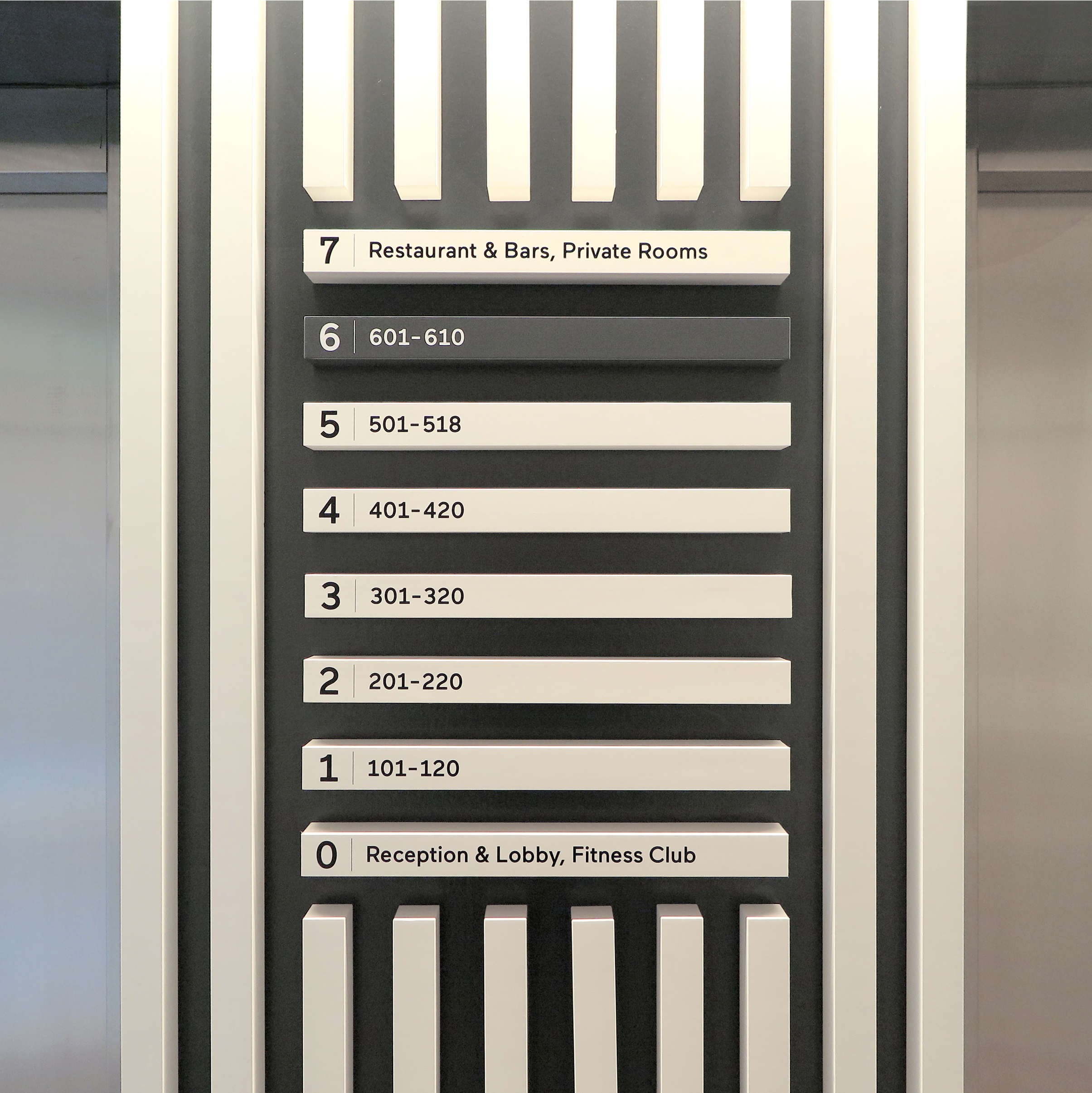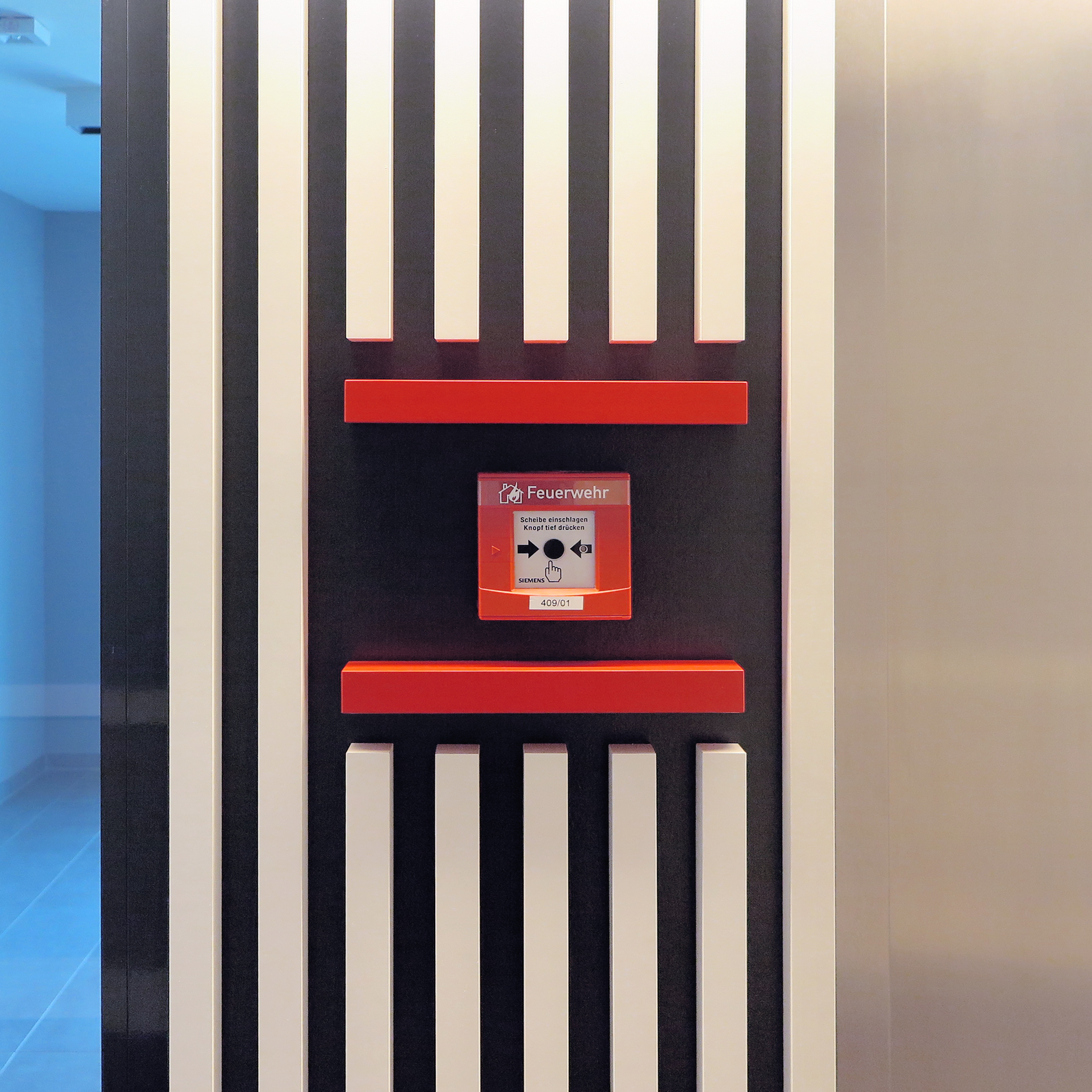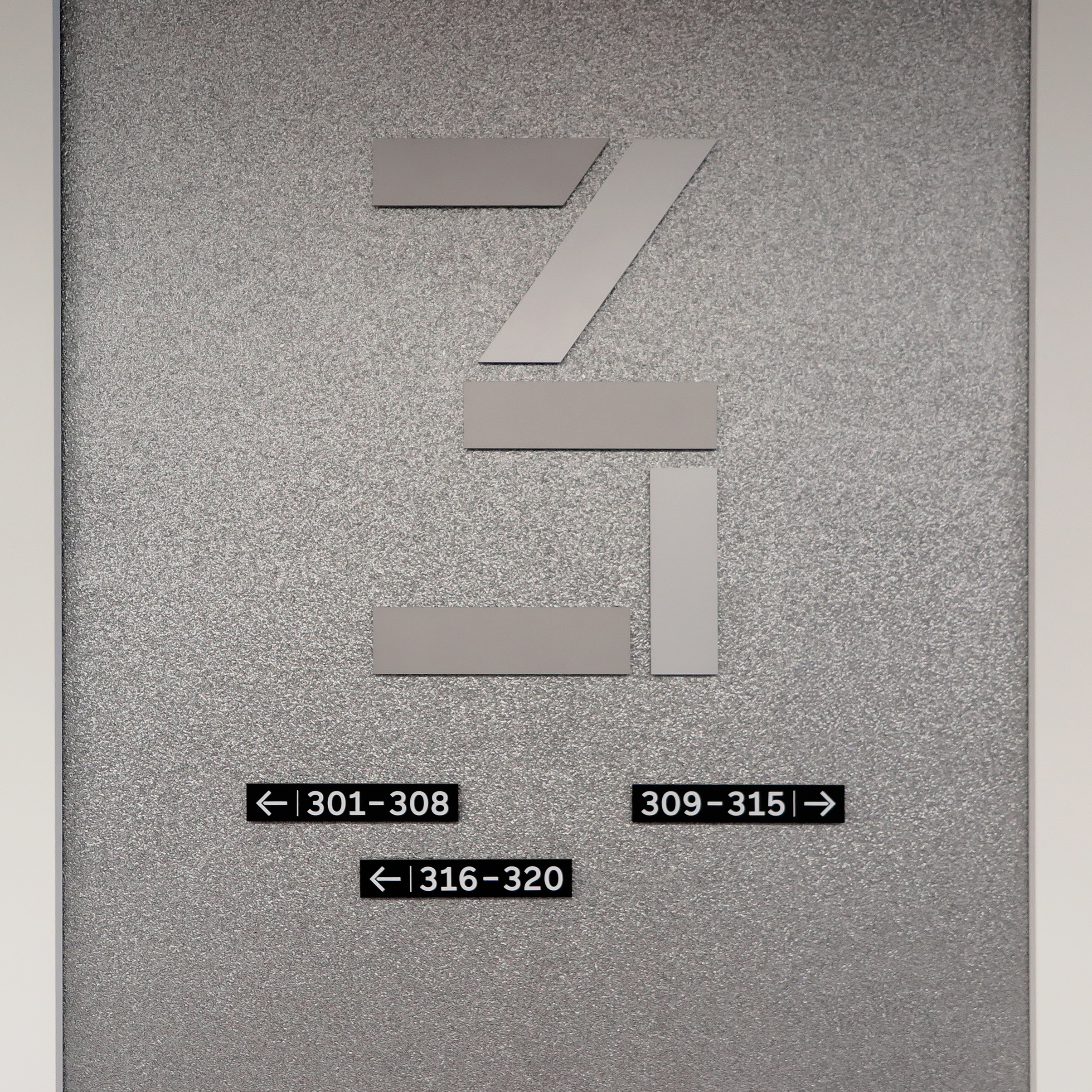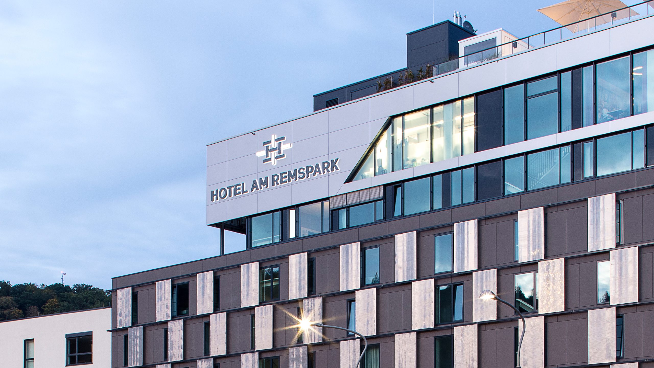L’hôtel d’affaires am Remspark est situé à Schwäbisch Gmünd. La façade du bâtiment reflète le paysage urbain ainsi que la longue tradition de l’orfèvrerie propre à la ville. Le système de signalétique s’inspire de cet héritage ainsi que de l’identité visuelle que nous avons également conçue pour le projet. Les éléments de signalétique sont intégrés à l’architecture et s’y adaptent avec discrétion. L’objectif était de ne pas surcharger le lieu, mais de fournir les informations essentielles, aux bons endroits.