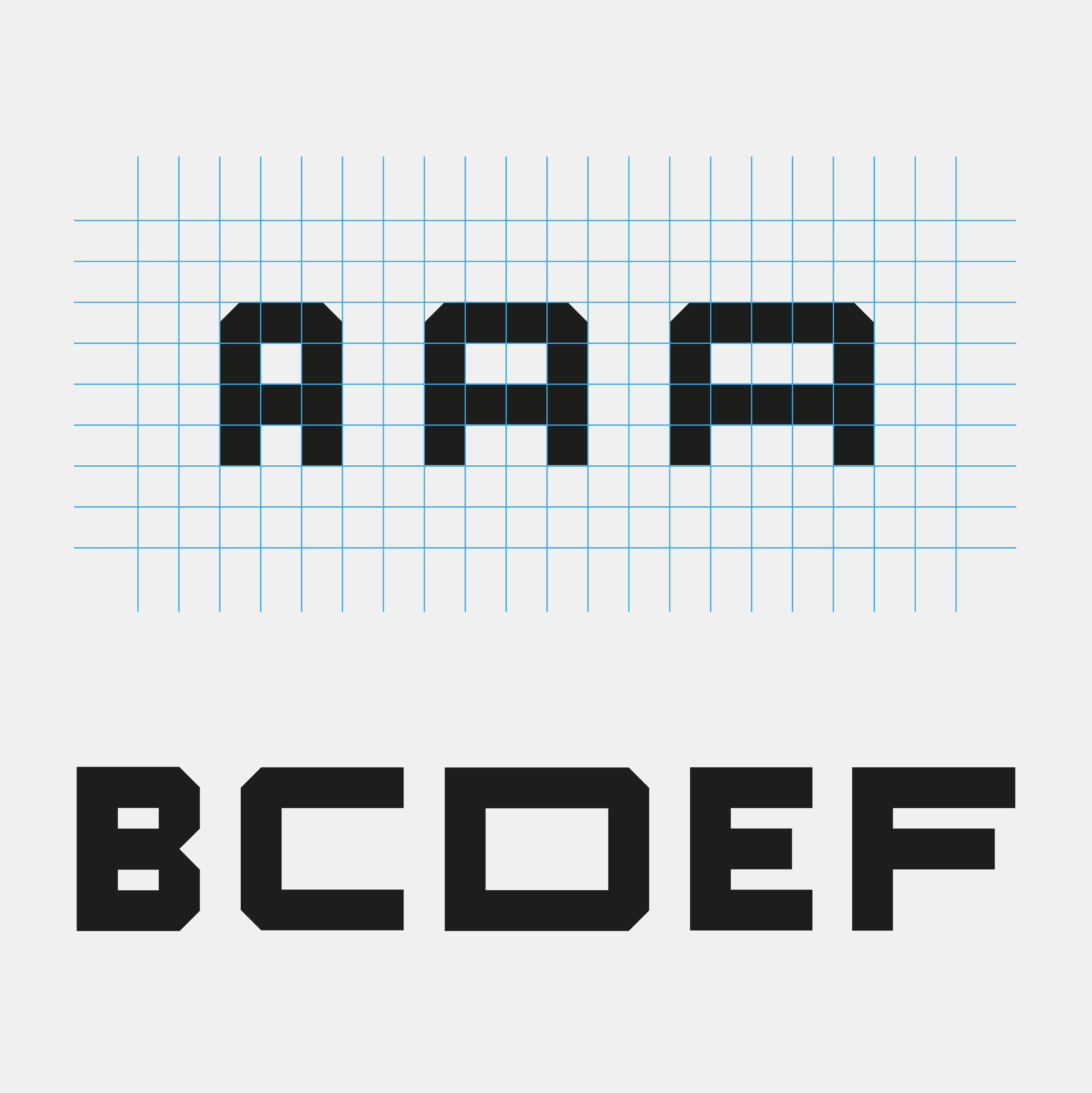 Chaque lettre existe en trois largeurs différentes, permettant de composer les mots sous plusieurs formes visuelles.