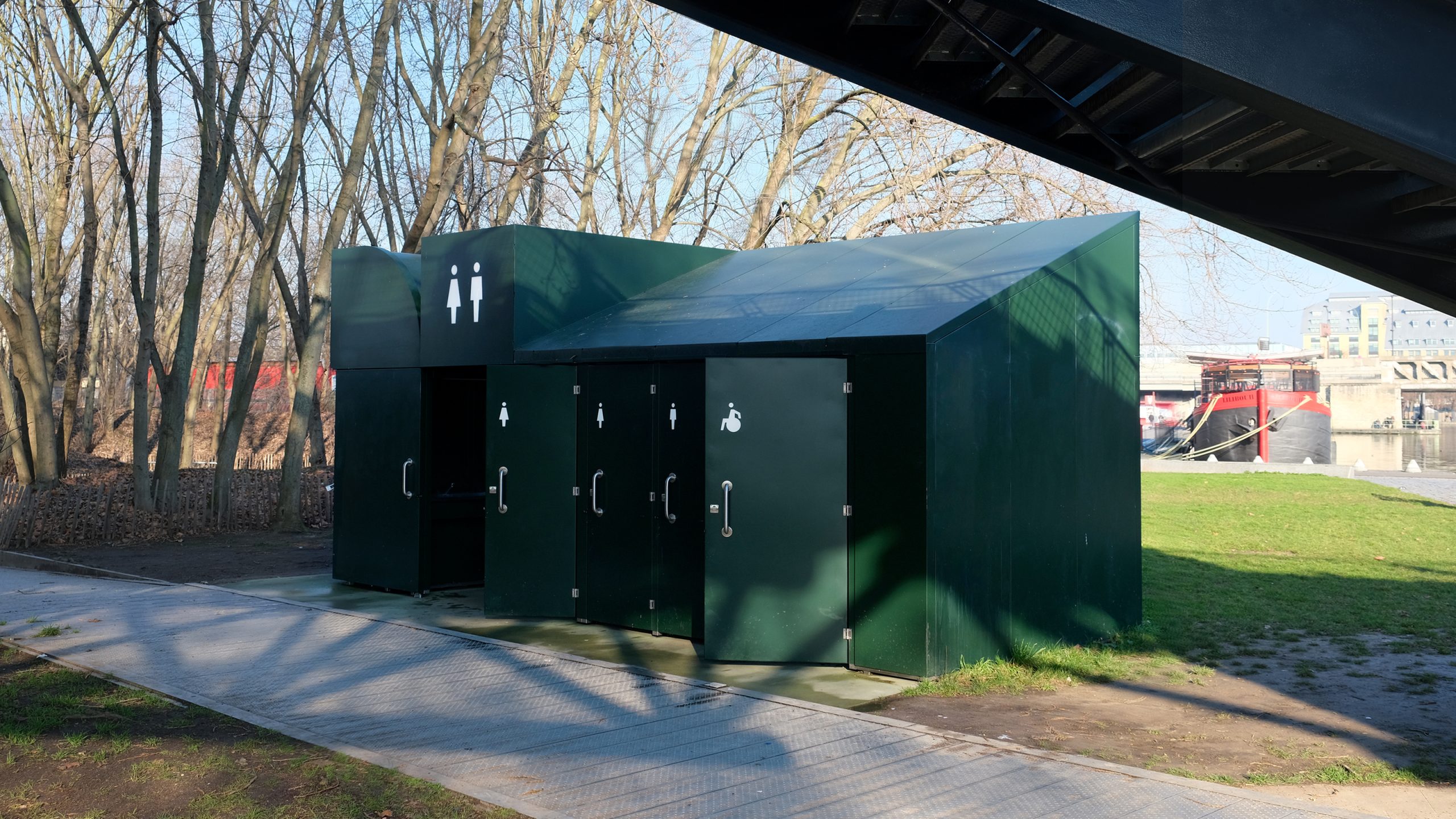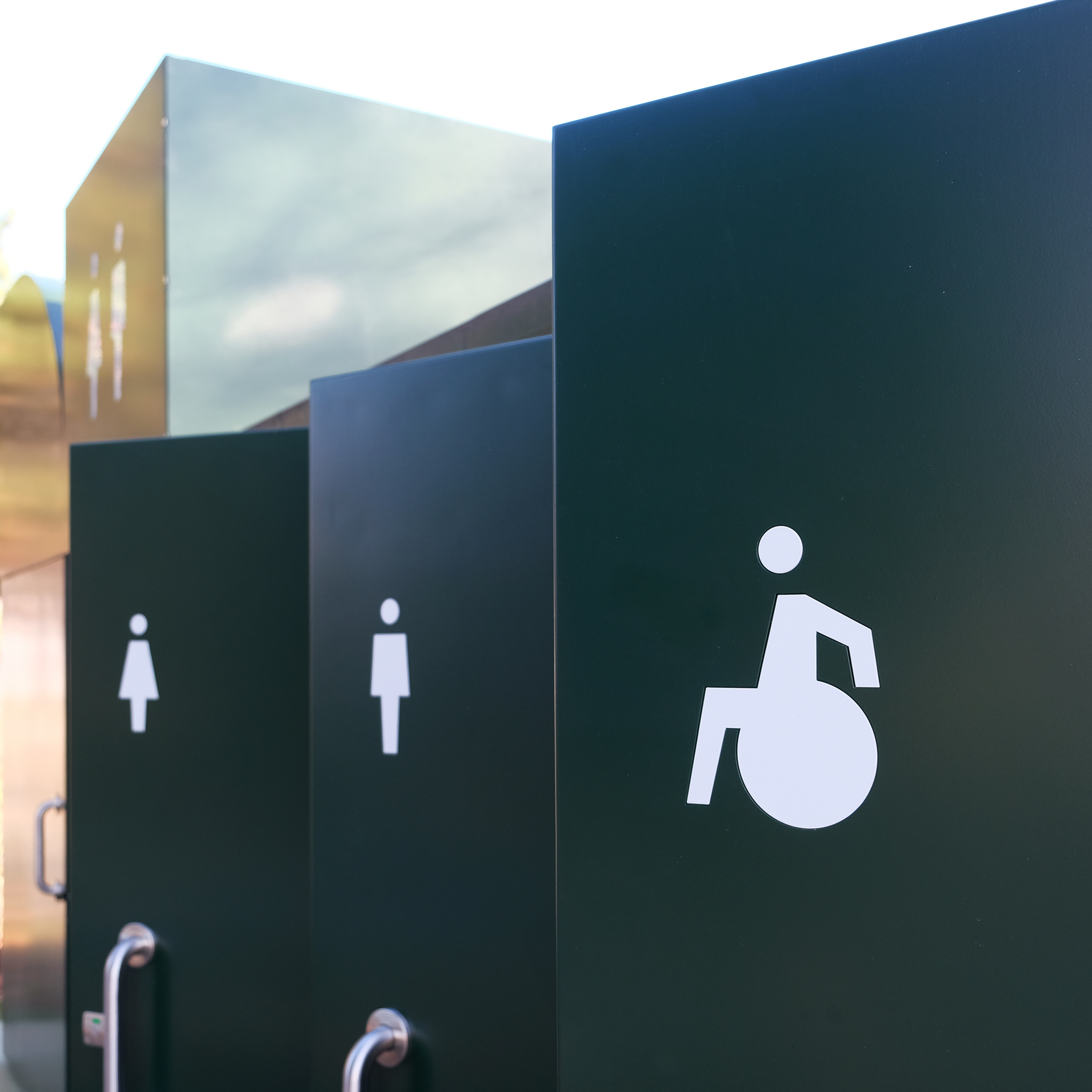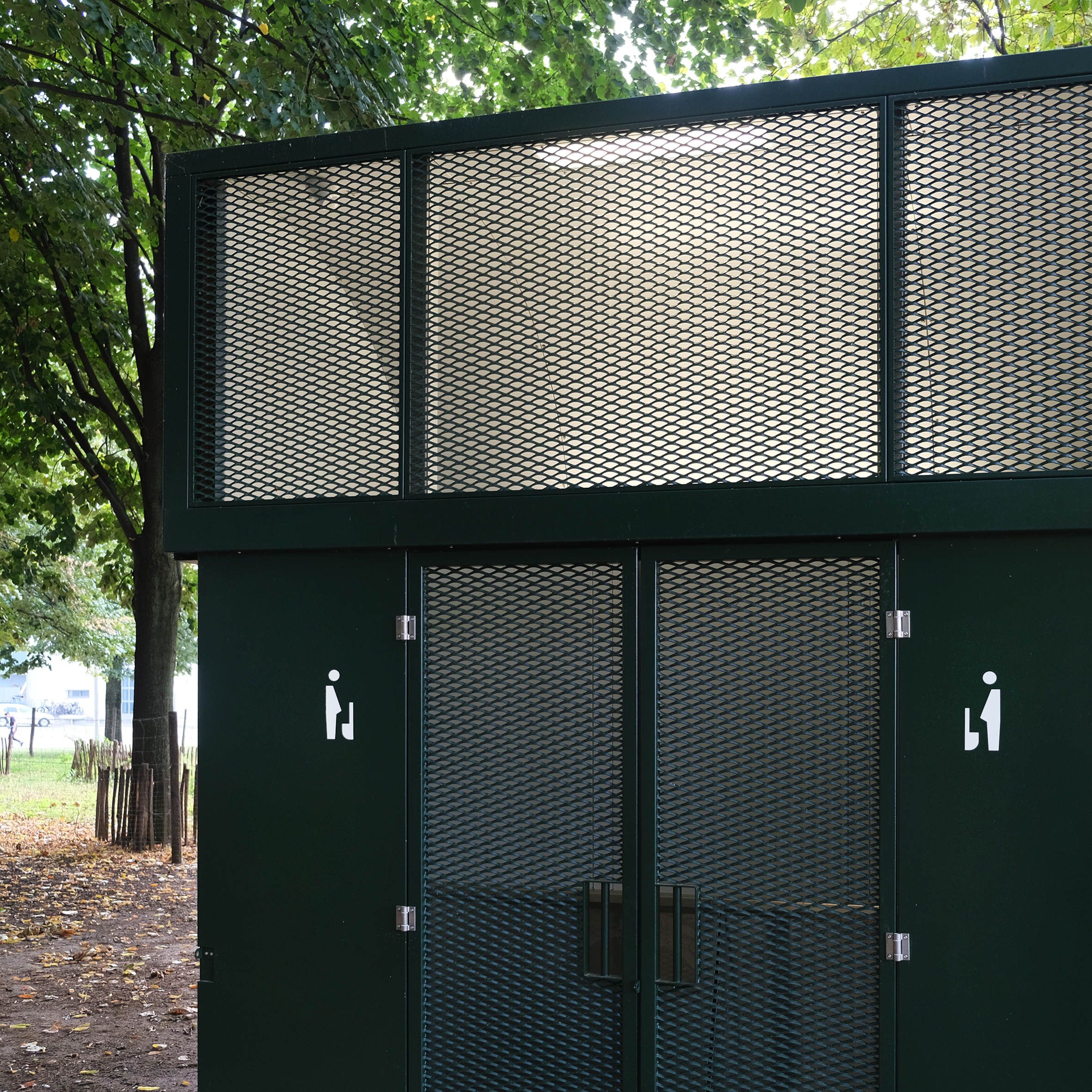 Le parc de la Villette, situé dans le 19e arrondissement de Paris, a été conçu par l’architecte Bernard Tschumi selon un système composé de points, de lignes, de surfaces et des 26 Folies emblématiques. Les modules sanitaires conçus par H2O pour les Jeux olympiques de Paris s’intègrent dans ce langage géométrique sans pour autant perdre leur caractère propre. Les pictogrammes que nous avons développés respectent également cette même tradition formelle. Après les Jeux olympiques, les modules resteront en place et deviendront une composante permanente du parc.