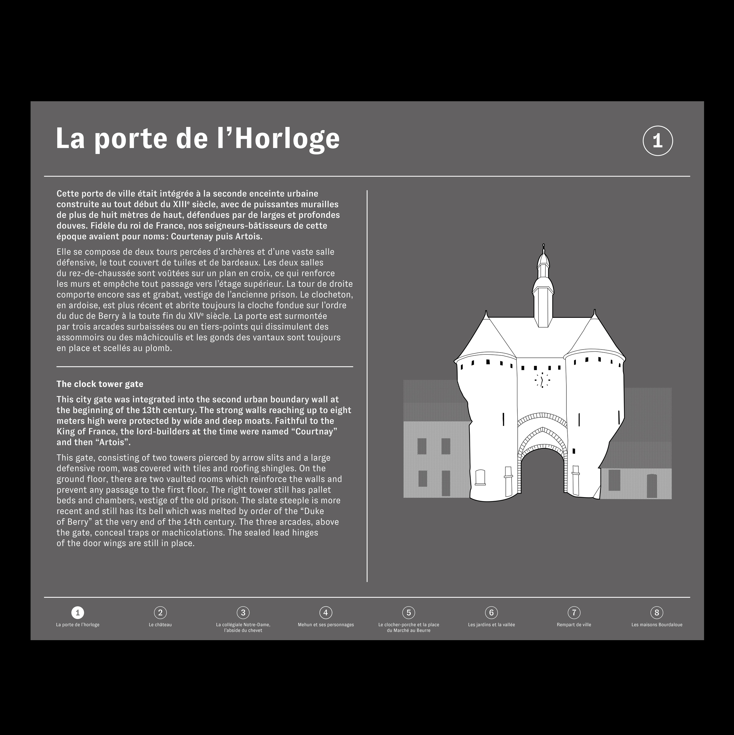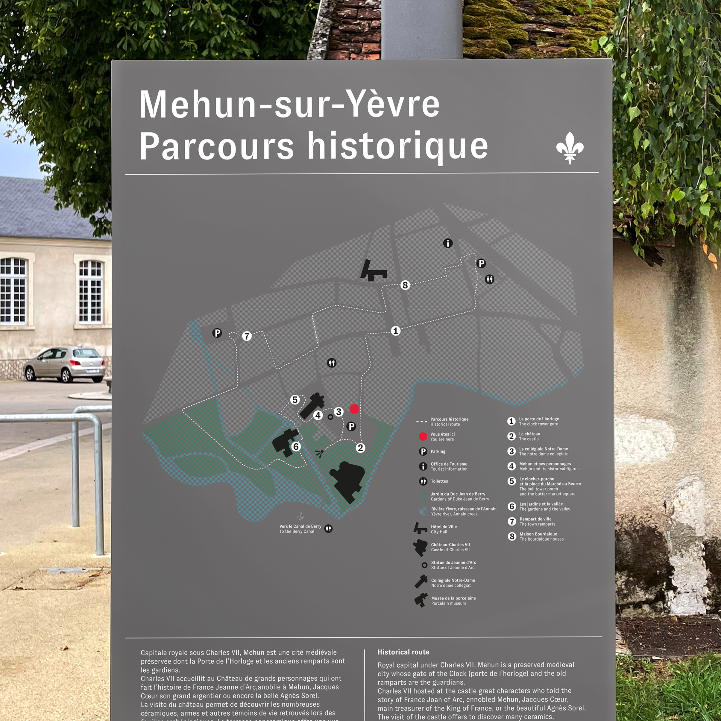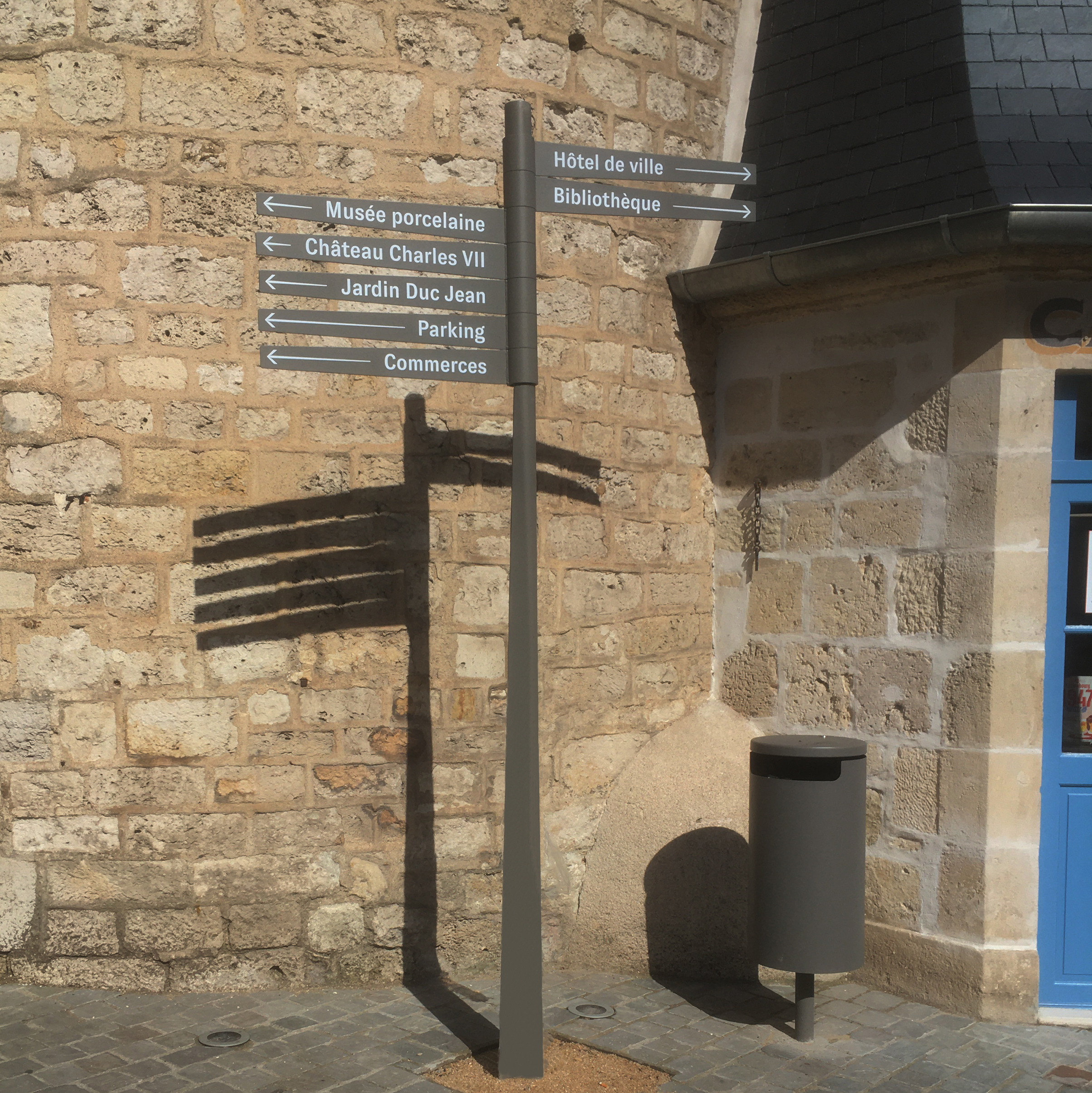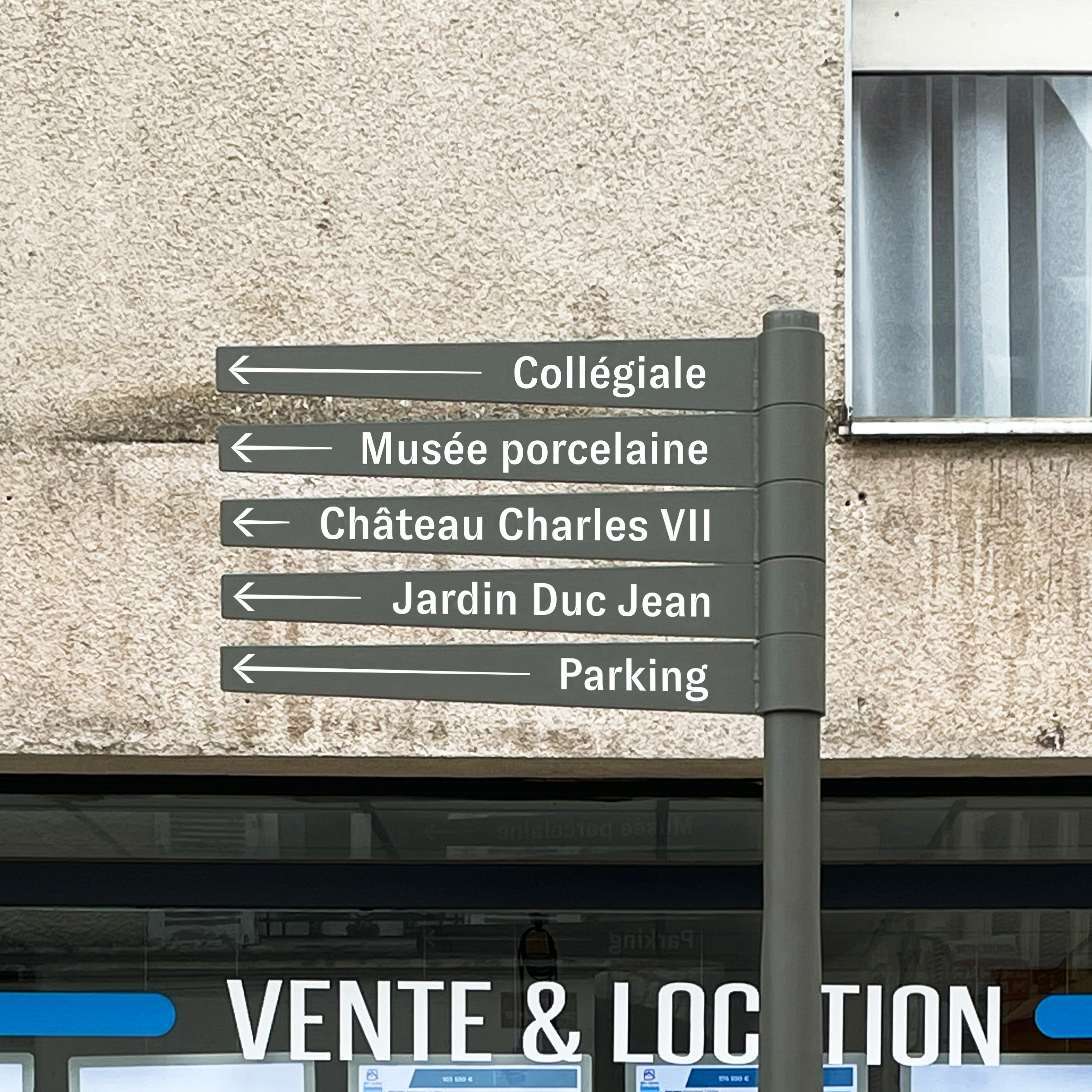 Dans le cadre de la rénovation du centre-ville menée par H2O, la ville a été dotée d’un nouveau système de signalétique. L’objectif était de faciliter l’orientation des habitants – et surtout des visiteurs – vers les différents lieux touristiques, et de définir un parcours de visite cohérent.Une iconographie harmonieuse a également été développée pour représenter chaque site, accompagnée d’illustrations spécifiques conçues à cet effet.